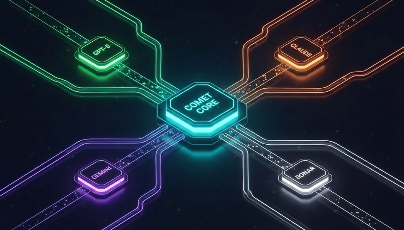 El núcleo de Comet se distingue por su flexibilidad. No ata al usuario a un único modelo de inteligencia. Actúa como un orquestador de inferencia que integra múltiples Modelos de Lenguaje Grande (LLM) punteros, permitiendo seleccionar la herramienta adecuada para la tarea: