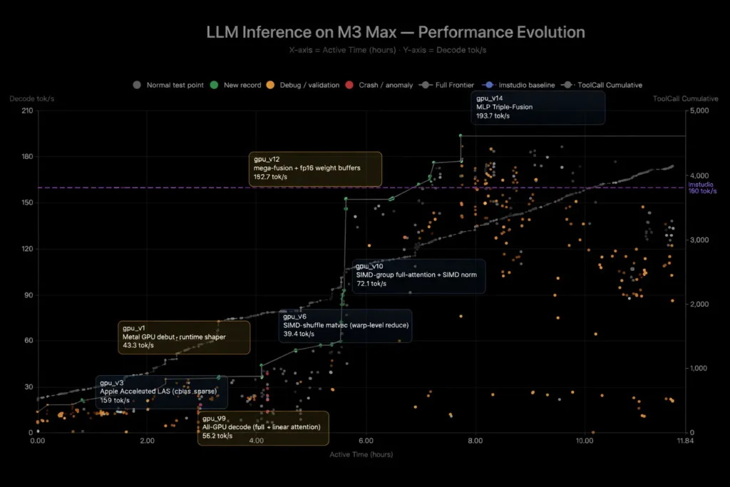 La verdadera métrica que define a esta generación no es la precisión en exámenes estáticos, sino la resiliencia en la ejecución continua. Kimi K2.6 ha demostrado la capacidad de sostener más de cuatro mil llamadas a herramientas en sesiones ininterrumpidas de doce horas sin sufrir degradación lógica. Un caso empírico documentado por la comunidad ilustra cómo un agente autónomo logró descargar un modelo local en hardware de Apple, analizar un motor de inferencia y reescribirlo completamente en Zig, un lenguaje de nicho altamente restrictivo. Tras múltiples iteraciones de compilación y prueba, el modelo incrementó el rendimiento de procesamiento desde quince hasta casi doscientos tokens por segundo, superando a plataformas comerciales dedicadas.
