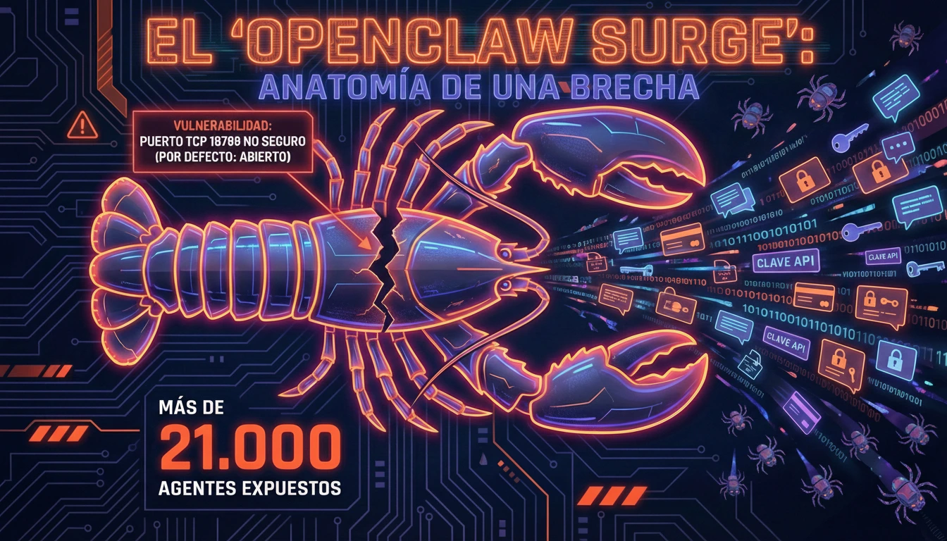 Esta libertad operativa y la falta de barreras de entrada han tenido un coste devastador en términos de ciberseguridad. La descentralización radical, cuando cae en manos de usuarios inexpertos que priorizan la funcionalidad sobre la protección, se convierte en un vector de ataque masivo. Informes forenses publicados por las firmas Cisco y Censys han revelado lo que ya se conoce como el incidente OpenClaw Surge, donde más de veintiuna mil instancias del agente fueron detectadas expuestas directamente a internet sin ningún tipo de autenticación robusta. El error crítico residía en la configuración por defecto del puerto TCP 18789, que dejaba los paneles de control administrativos accesibles a cualquier escáner de red.